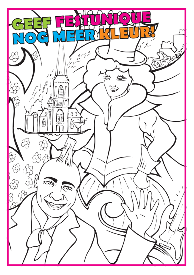 Hebben jullie de vrolijke kleurplaat in de Festunique krant al gespot? Sander Esselink heeft deze plaat speciaal voor Festunique ontworpen! Dus kinderen (en creatieve volwassenen) pak de potloden er maar bij!